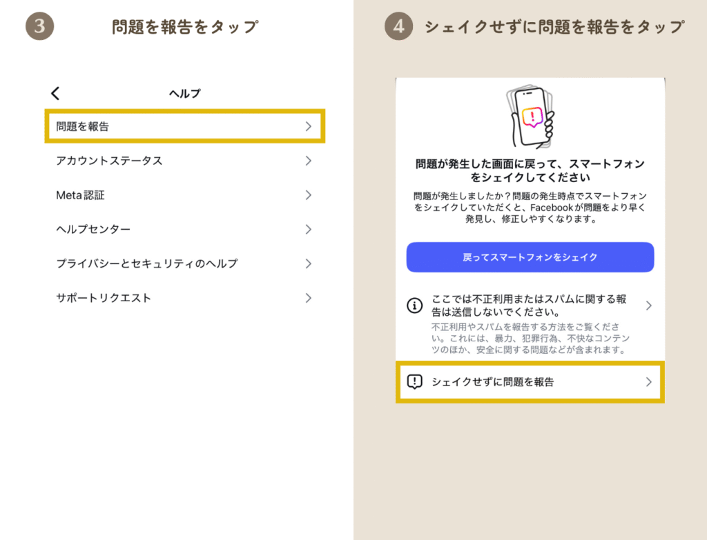 設定→ヘルプ→問題の報告と進んで