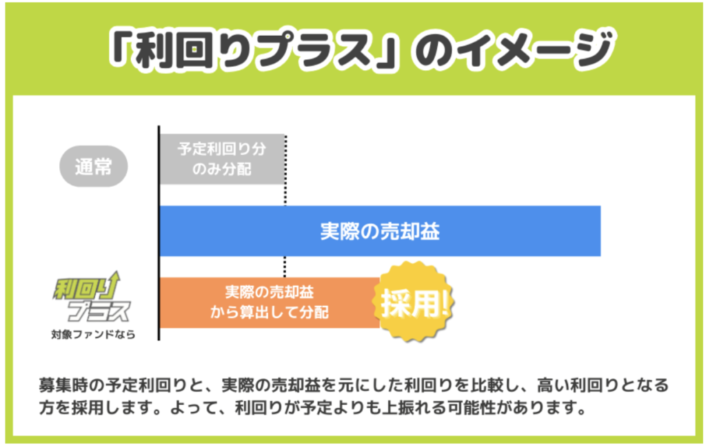 しかも、今回の「81号ファンド」には**『利回りプラス』**っていう、予定より配当が増えるかもしれない嬉しい仕組みがあるんだって!